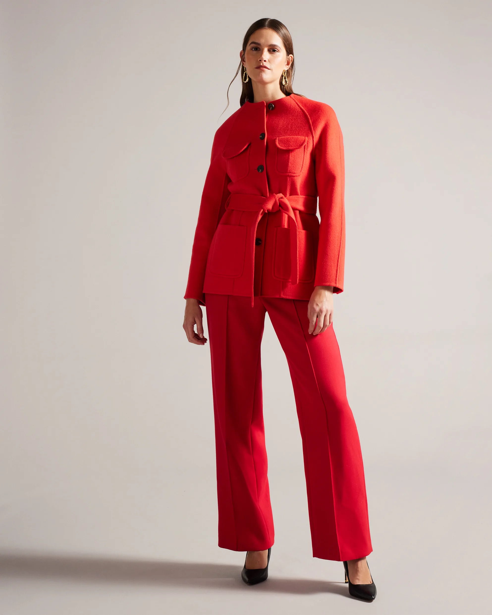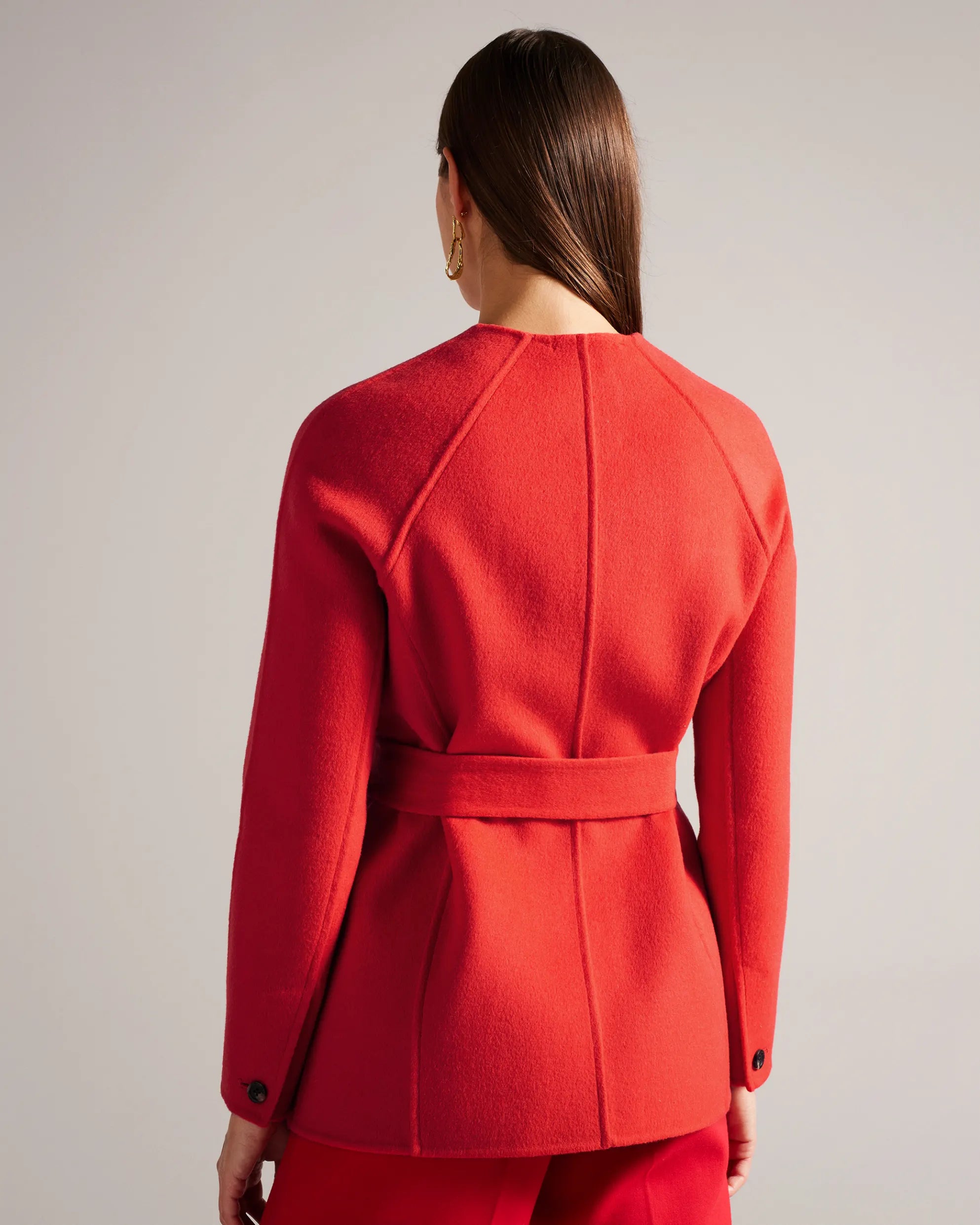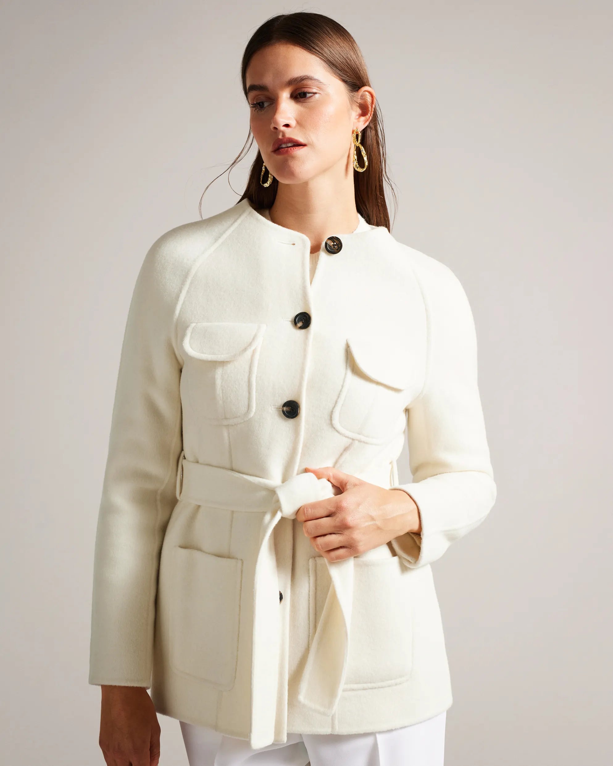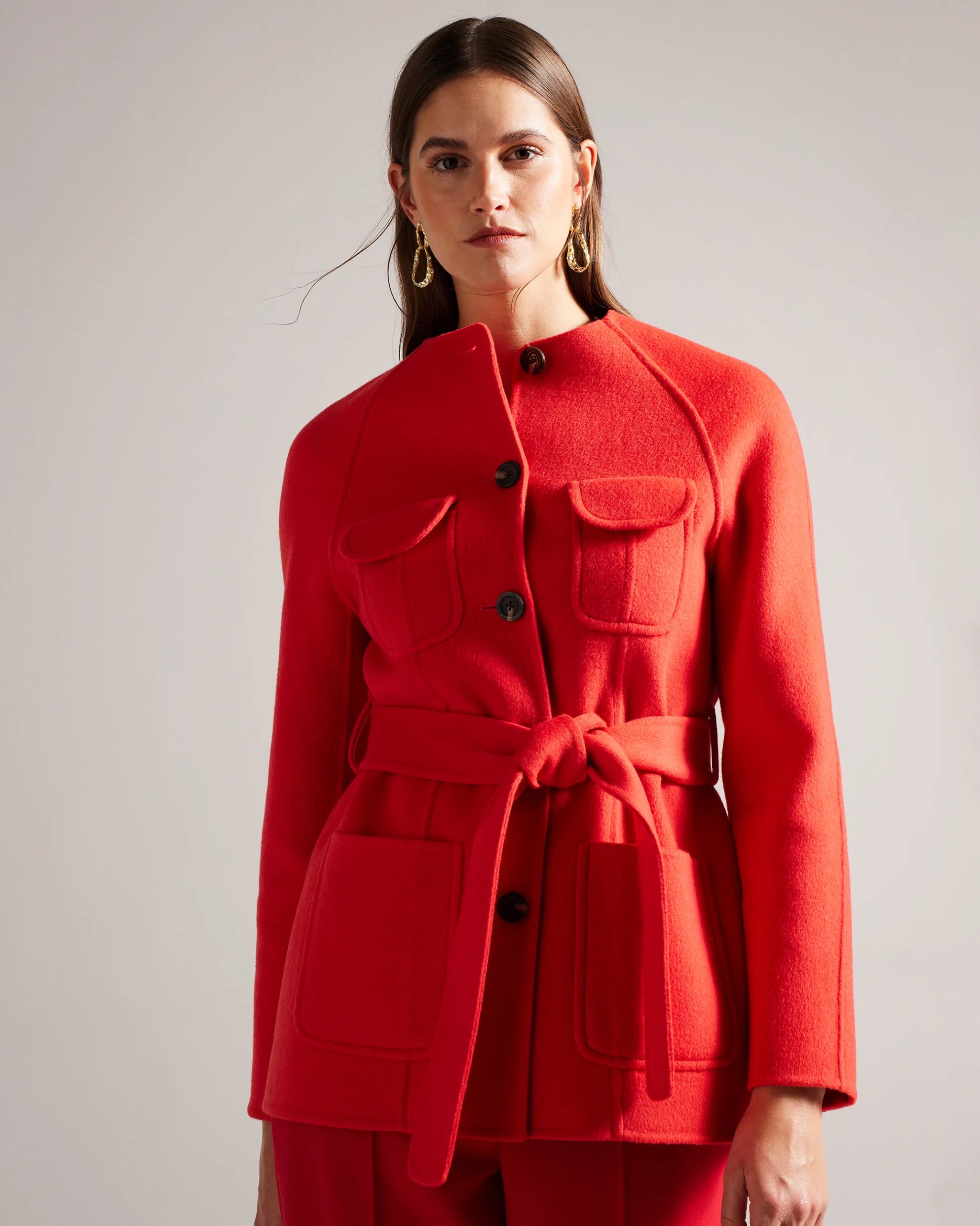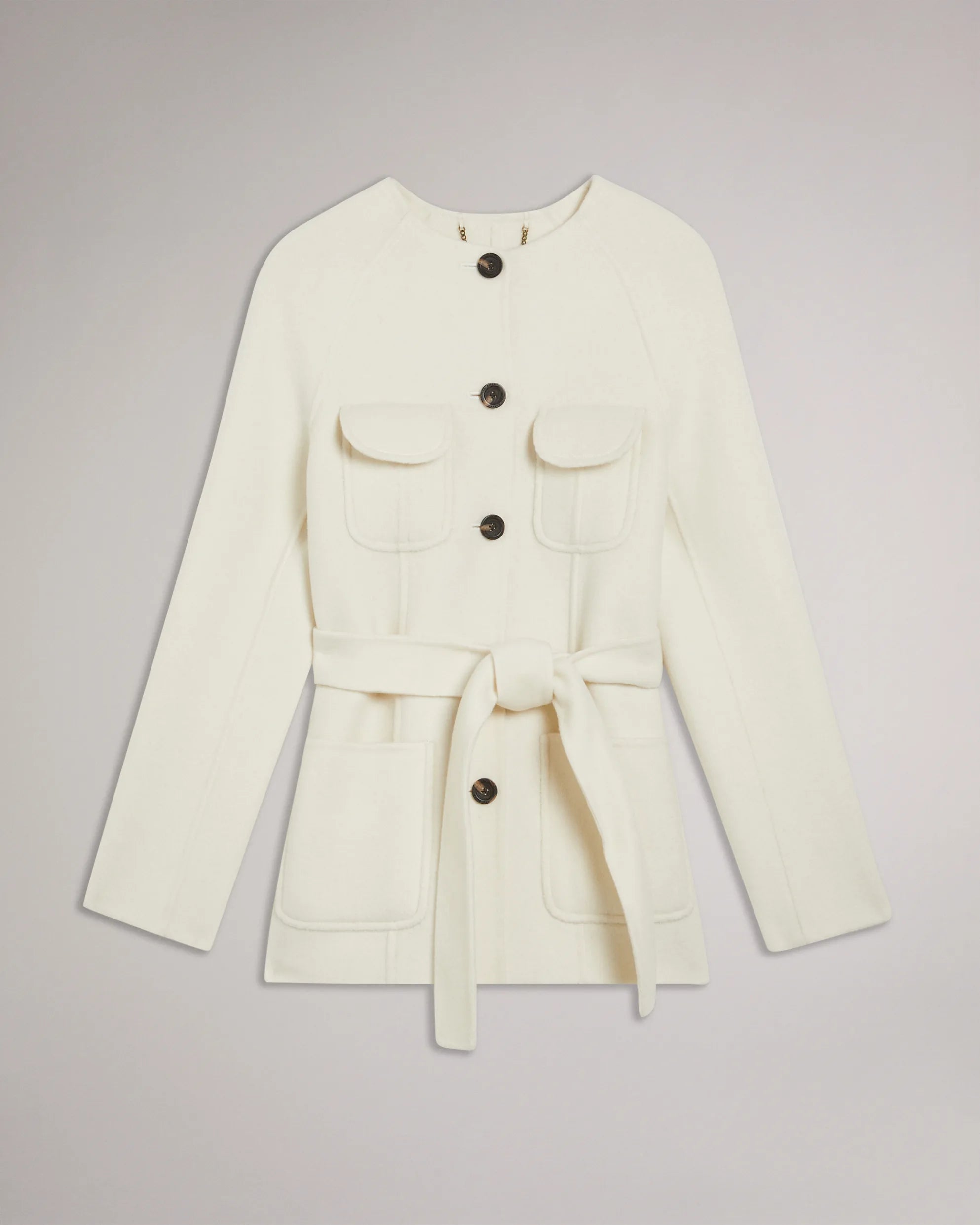 Going from autumn to winter is effortless with LESLIIY. This coat is made from a cosy wool blend and cut in a short length for outerwear that can take you through the seasons. A classic round neckline and self tie waist belt are what make this piece oh-so wearable, with patch pockets and raised seam details for a trendy touch.